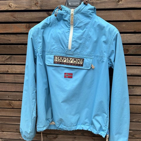 Nesten ubrukt, foret og vindavvisende strikkejakke i møkreblå farge fra Napapijri . Str. 12 år
