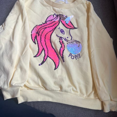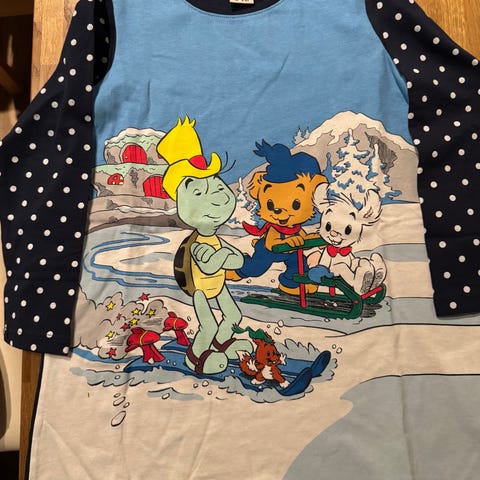 Jeg selger en fin tshirt med Pippi motiv foran. Det står ikke noen merkelapp i, men jeg vil si den passer til ca en fireåring. Selve Pippi er påsydd hjemme. Fargene er fortsatt fine og ikke falmet. Denne selges nå for 100,-