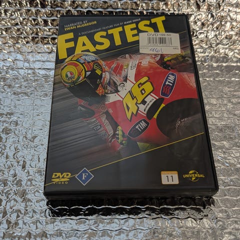 DVD med tittelen Fastest. Inneholder innhold relatert til motorsykkelracing med fokus på fører nummer 46.