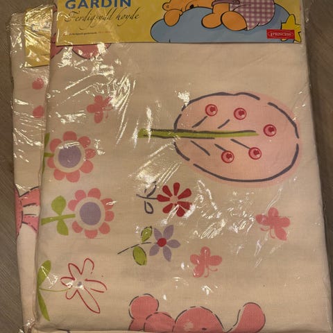 Sengesett til babyjente. Rosa og hvitt med bamse brodert på. Dynetrekk str 65x80 + lite putetrekk.