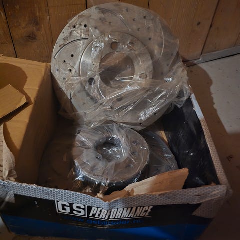 En av bremseskivene har vært ut av esken for å prøve å få den på, da ble det oppdaget at skivene var feil.