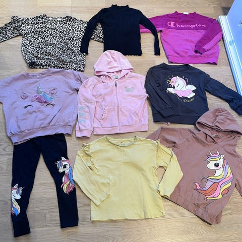 Klærne er brukt og kan ha små anmerkninger. Mye bruk igjen og de fleste klærne fremstår som pent og lite brukt.