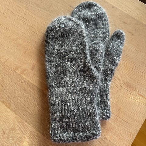 Votter strikket / håndstrikket vott i grå farge. Lette, myke votter.