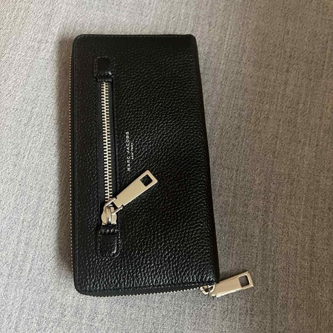 Michael Kors lommebok i lær for dame. Lommeboken har flere kortlommer, en glidelåslomme for mynter og et gjennomsiktig vindu for ID-kort.