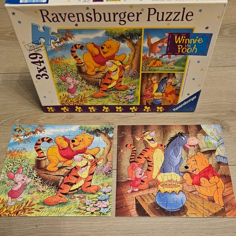 Perfekt julegave 🎄 Disney Winnie the Pooh puslespill med 100 biter. Passer for barn fra 6 år og oppover. Puslespillet viser et motiv med Winnie the Pooh og venner på en bro i skogen om kvelden.