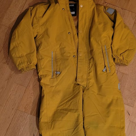 Twentyfour vinterdress for barn i størrelse 92, unisex. Dressen er gul med forsterkede felt på knær og refleksdetaljer. Hel glidelås i front og hette. Egnet som yttertøy for barn i barnehage- og uteaktivitet, med praktiske lommer og strikk under føttene for å holde buksebena på plass.