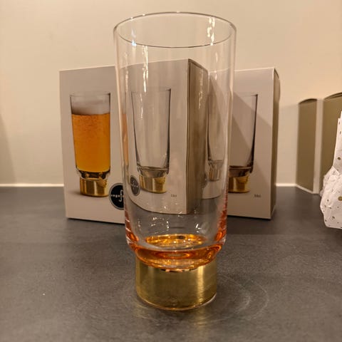 Glasset er aldri brukt, men har dessverre fått en liten ripe under flytting.