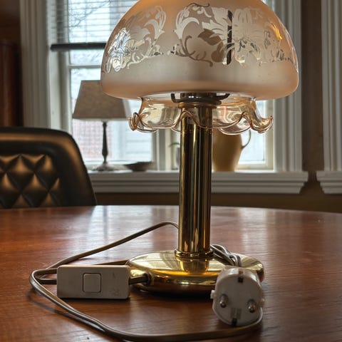 Selger eldre Messinglampe i god stand. Støpselet må skiftes.