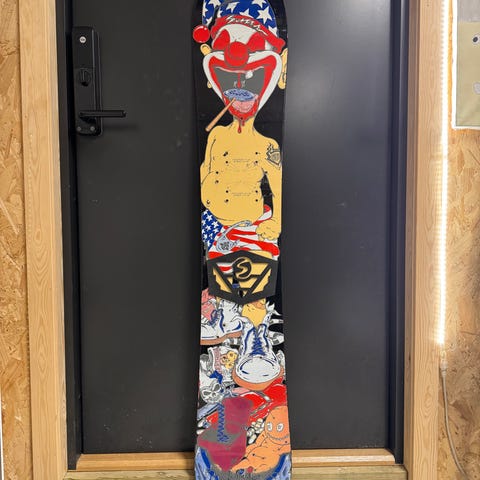 Brettet er delaminert og ikke kjørbart, selges derfor kun som dekor / collectible. Grafikken er i god stand og fremstår som et ekte “conversation piece”.