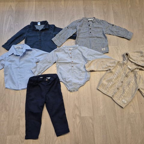 Selger en pakke med 2 bodyer og 2 bukser i størrelse 68. Noen plagg er litt mer brukte enn andre, men alt har fortsatt godt med bruk igjen.