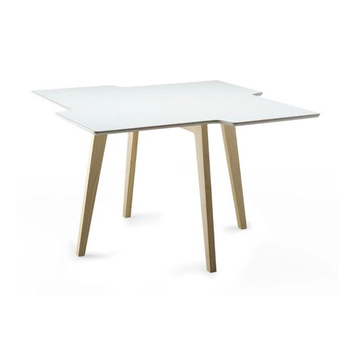 To stk. Designbord av modellen RBM Twisted Little Star 5680. Hvit overflate og ben i eik. Bordplatene har en unik form slik at de kan settes mot hverandre som i et puslespill. Plass opptil 8 personer rundt. De er enkle å demontere og montere, og tar liten plass ved lagring.