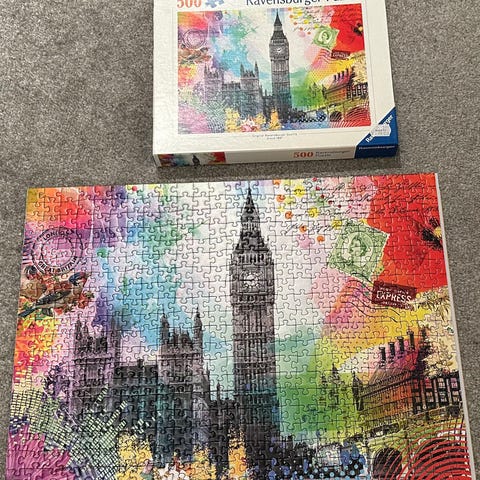 1000 brikker Ravensburger puslespill med julemotiv fra London. Lagt én gang. Perfekt førjulsaktivitet.