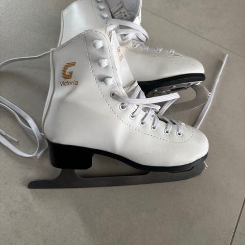 Graf Victoria skøyter for barn i størrelse 34. Skøytene er hvite og designet for andre skøytesporter. Har noen bruksmerker, se bilder.