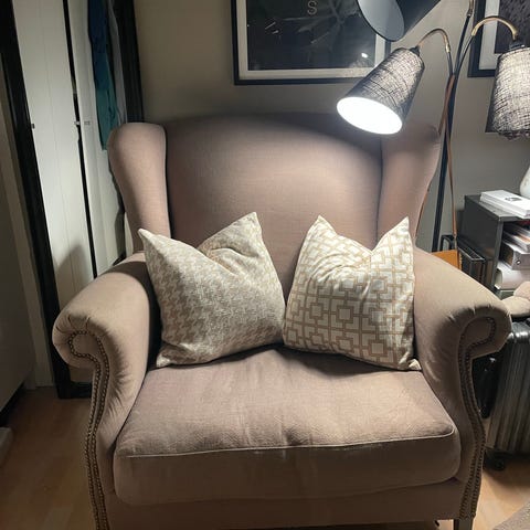 Mål ifølge produsent er B104 x D111 x H65 cm for 1-seter med arm.