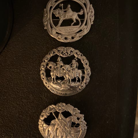 Flott antikk anheng med halskjede. Bud ønskes. Selges hb.
