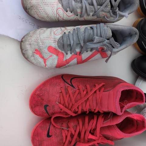 Nike Tiempo fotballsko str 33 gis bort. Skoene ser veldig pene ut, men knottene under i fremre del av skoen er ganske slitt. Tipper de holder 1 sesong eller 2 til.