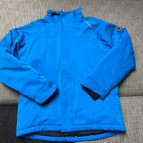 Vinterjakke i pen blåfarge. Refleksmerker på ermer og bak. Noen nupper på høyre skulder. Ingen hull eller flekker.