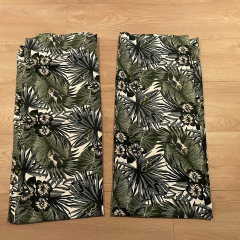 2 flotte pyntepute trekk fra Kid i bomullsvelur. Mønstret forside med sort bakgrunn. Beige bakside i samme stoff kvalitet. Lukkes med glidelås nederst. Ikke synlig brukt. Selges samlet