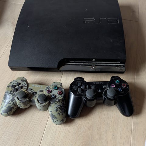 Sony Playstation 3 spillkonsoll med tilbehør inkludert rattkontroller og kontroller. HP skjerm følger med. Kan sendes.