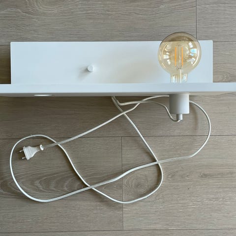 Nattbord - der du kan velge hvilken side lyspæra skal være på! Også med usb-lader til å lade mobil etc