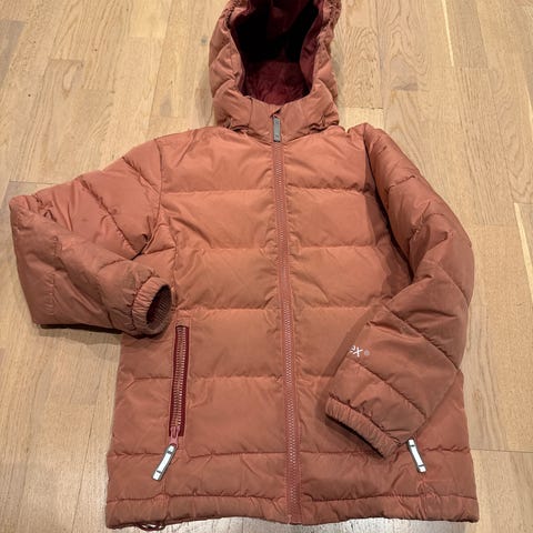 Reima dunjakke for barn i størrelse 140. Jakka er i god stand, men det har vært et lite hull ved brystet som har blitt tettet igjen.