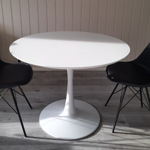 Hei, jeg har et hvitt rundt bord til salgs, med bruksspor.