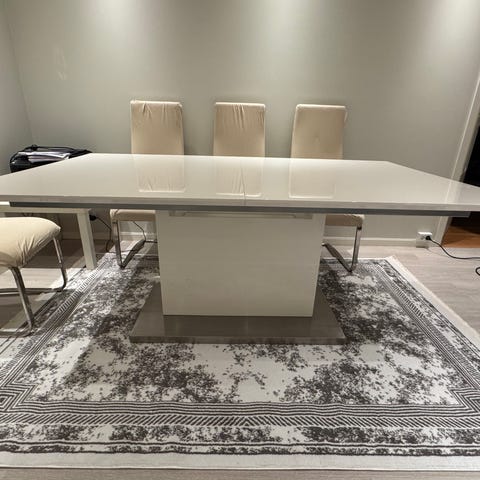 Bordet må hentes. Har brukt beskyttelse i plast over bordplaten siden kjøpsdato.