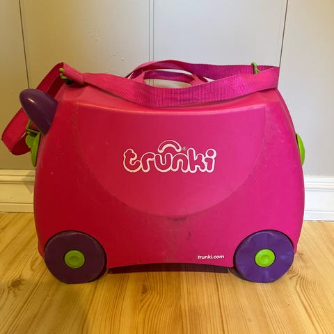 Pent brukt Trunki barnekoffert selges. Den er noe slitt på hjulene, men ellers i god stand.
