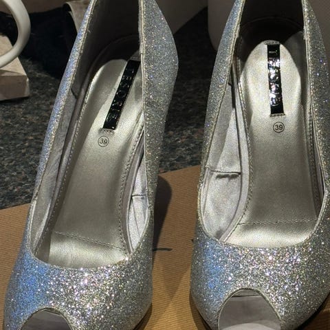 Tesori pumps str 38 sølv/glitter