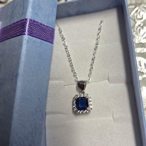 Sterling silver anheng med hvit og blå safir. Kjøpt i usa i 2020. Ikke brukt. I original eske.