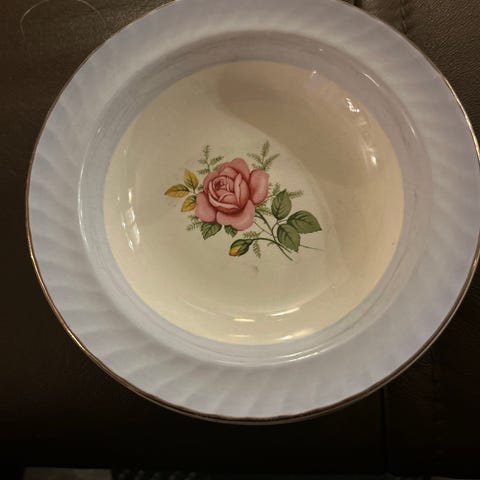 5 store og fine middagstallerkener. Ø 26 cm. Fine i glasur6. Noen har små skader på kanten. Se bilder. Selges samlet for kr 500