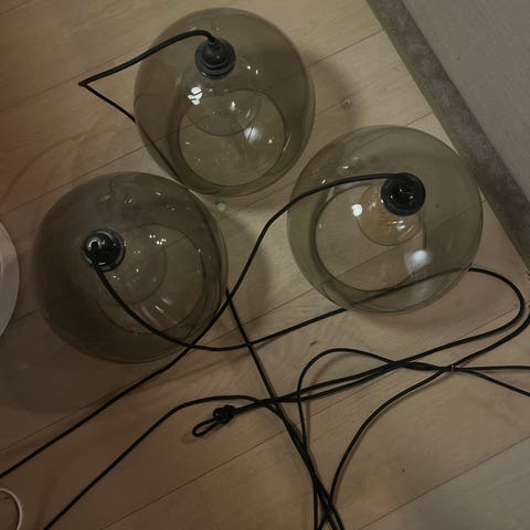 Ikke brukt, men pakket ut. 170cm ledning med «sukkerbit». Høyde glasskuppel 17 cm, diameter 14 cm. Pris pr stk