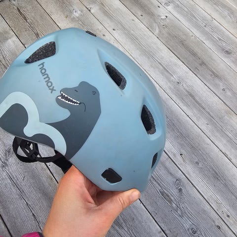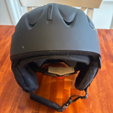 Etto alpinhjelm str 52-57. Brukt av gutt 6-10 år. Hjelmen har justerbar stropp med hurtiglås og justeringsmekanisme bak for tilpasning av størrelse. Passer også til skøyter og sykkel.