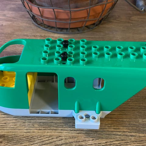 Blå Duplo koffert, 3,5 cm høy og 3 cm bred. Selges kr.30.-+kr.69.-postens porto.