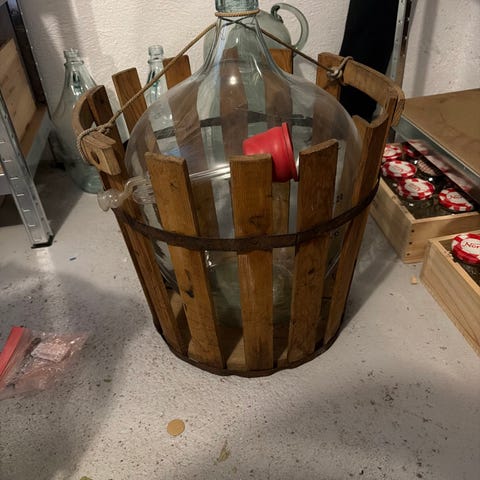 Komplett utstyr til vinproduksjon - vinballonger, gjærlåser og korkesett