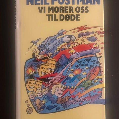 Neil Postman "Vi morer oss til døde" oversatt av Karin og Kjell Røvik. Den inneholder offentlige samtaler i mediealderens tidsalder og er delt inn i flere deler som omhandler mediet, metoden, epistemologi, boktrykkerkunstens Amerika, den populære taksering og underholdningskulturens tidsalder. Boken er utgitt av Gyldendal Norsk Forlag, Oslo.