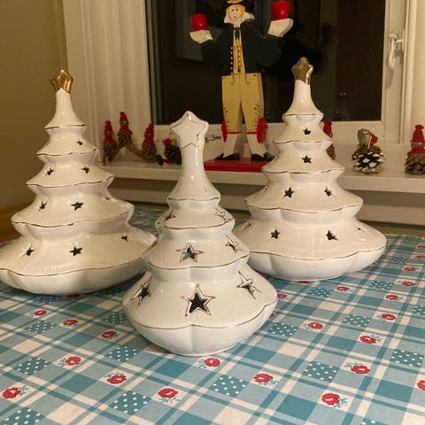 Porsgrund nissefigur i blå keramikk.