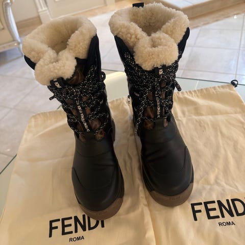 Selger et par Chanel Moon Boots i svart – en sjelden og svært ettertraktet modell fra Chanel. Støvlene kombinerer luksus, komfort og ikonisk design, perfekte for vinteren eller fjellet.