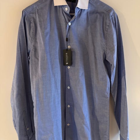 Frakken er i str M/L og passer de som bruker rundt 48/50 i dressjakke. Frakken har en sentrert split på baksiden som gir frakken et stilfullt preg.