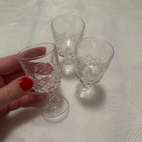 Har denne typen drikkeglass som blir bare stående. Ingen sår eller skader på det.