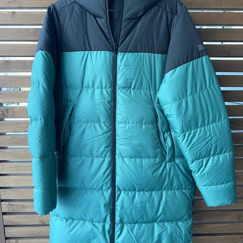 God, varm og lang dunjakke. Obs! Bilde nr 2 er kun for å vise modellen. Jakken som selges er på bilde 1.