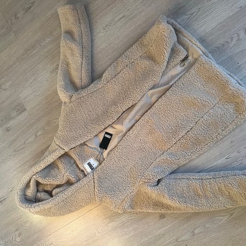 Beige teddyjakke fra HM i str M. Romslig i størrelsen
