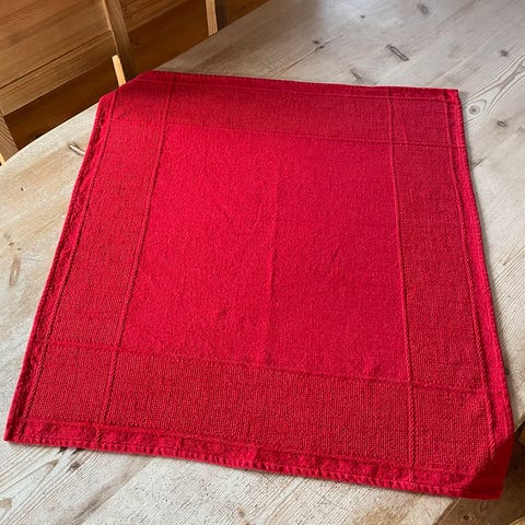 To røde spisebrikker 47x33 cm. Bomull. Enkle uten polstring.