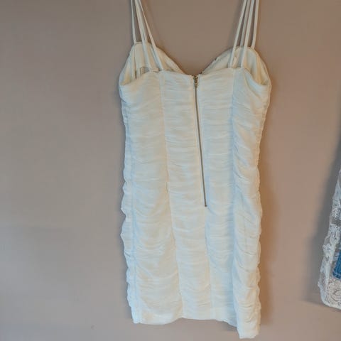 Shein Festkjole i størrelse XS, gul farge, laget av polyester. Kjolen er designet for kvinner og har en tettsittende passform med rynkedetaljer. Egnet til festlige anledninger.