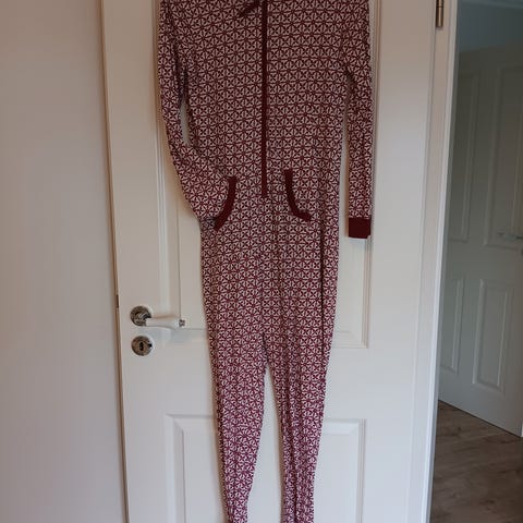 Rød Onepiece med juletre, veldig myk og god, men aldri brukt. Str L/XL.