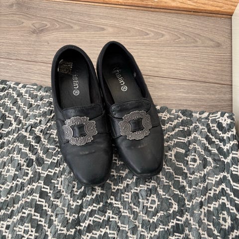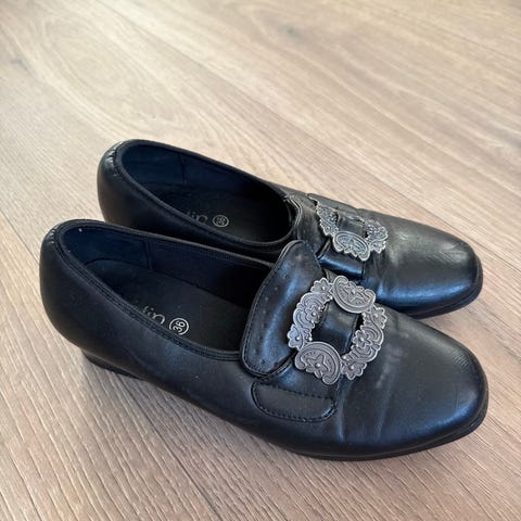 Str 36. Pent og lite brukt. Ørlite slitasje på beskyttelsen på tuppene på høyre sko, se bilde. Lite synlig.