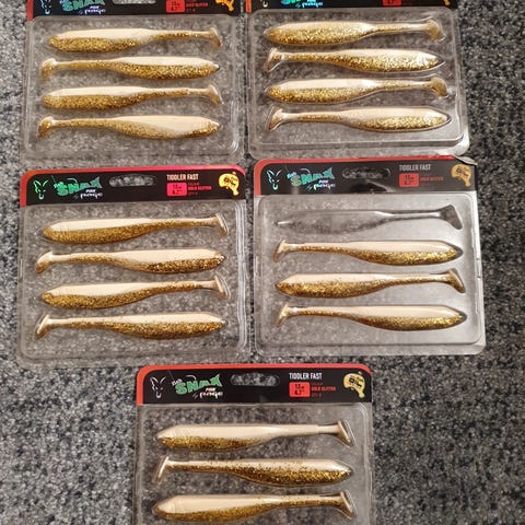 Det er totalt 6 jigger fra Tsunami som hver veier ca. 20 gram. Fra Storm er det 4 jigger som hver veier 62 gram og fra Panther Martin (Stinky shrimp, en rekeimitasjon med lukt) er det 6 jigger som veier ca. 15-20 gram. Sistnevnte er en sjelden variant som ikke er å oppdrive på markedet lenger.