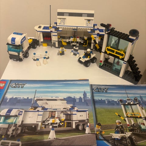 LEGO City Politi Stasjon lekesett med flere politimotorsykler, helikopter og bygninger. Passer til lek og samling innen LEGO City tema.