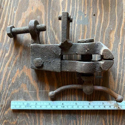 Peerless Wire Stripping Tool i metall. Verktøyet har håndtak og en mekanisme for å fjerne isolasjon fra elektriske ledninger.