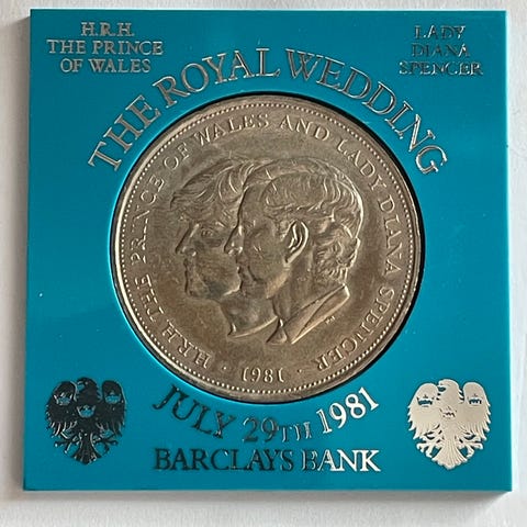 Nål av Diana og Charles og mynt fra Kensington Palace